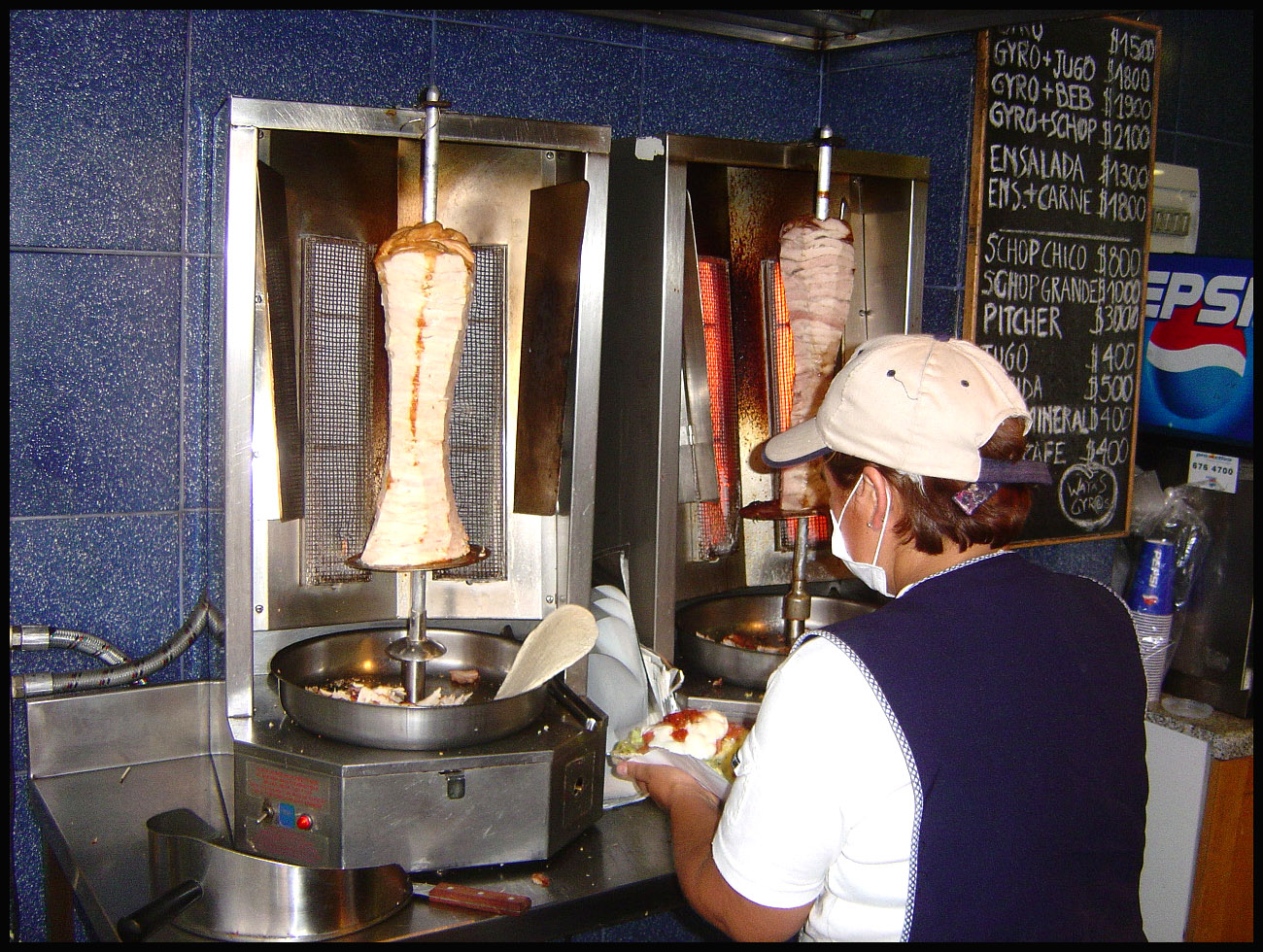 実は今日、あっ! 日付変わってるから昨日になるか 妹のさやかと二人で母とネルソン叔父さんそれに僕の彼女のガビを食事に誘いました。 何でこんなに太っ腹かと言うと、もう知っての通りついこの間給料日だったからです(二人ともアルバイトしていました、同じ職場で) で、何処へ行こうかと考えていたらさやかがアメリカで食べたギリシャ料理の"Gyros"を食べたいと・・・ そこでメトロ El Salvador の近くにある"Wyro's Gyros"に行きました。 まあセントロの方に良くある小さな店ですね 着いたらメニューのシンプルさに驚きましたね、売ってるのはGyrosだけ でこのジロスはメキシコのモヒートスに似ていて、肉(庭鳥か豚)、キャベツ、ねぎ、ソース等が入っています。 肉は写真の通り、大きな鉄棒の軸に肉を串刺しにしてその回りに電気ヒーターみたいなもので肉をゆっくり焼いていきます。で、焼けた外側から切ってジロスに乗せるんです 食べてみたら思っていたより美味しかったけど、少し肉が乾き気味でパサパサしていましたが野菜とソースが沢山入っているのであまり気にしませんでしたね。 1800ペソでジロス+ジュースが出てくるから結構得 問題はサービスですね 二階へ上がって待っていたら 「出来たよ-取りにおいでー」と下から叫び声が ![]() テーブルも少しベトベトしていたし でもまあ、いいでしょそんな小さい事 安いんだから ははははは 余談ですけど第3州のCalderaで研修していた頃広瀬さんに食事を奢ってもらった時言われました 「食生活で先進国と途上国の見分け方知っている? 先進国では量より質、途上国では質より量のほうが人の好みなんだよ」 皆さんはどうですか, 先進国派それとも途上国派? 僕は食べ物と時と場合によるけどやっぱり今のところは量かな?