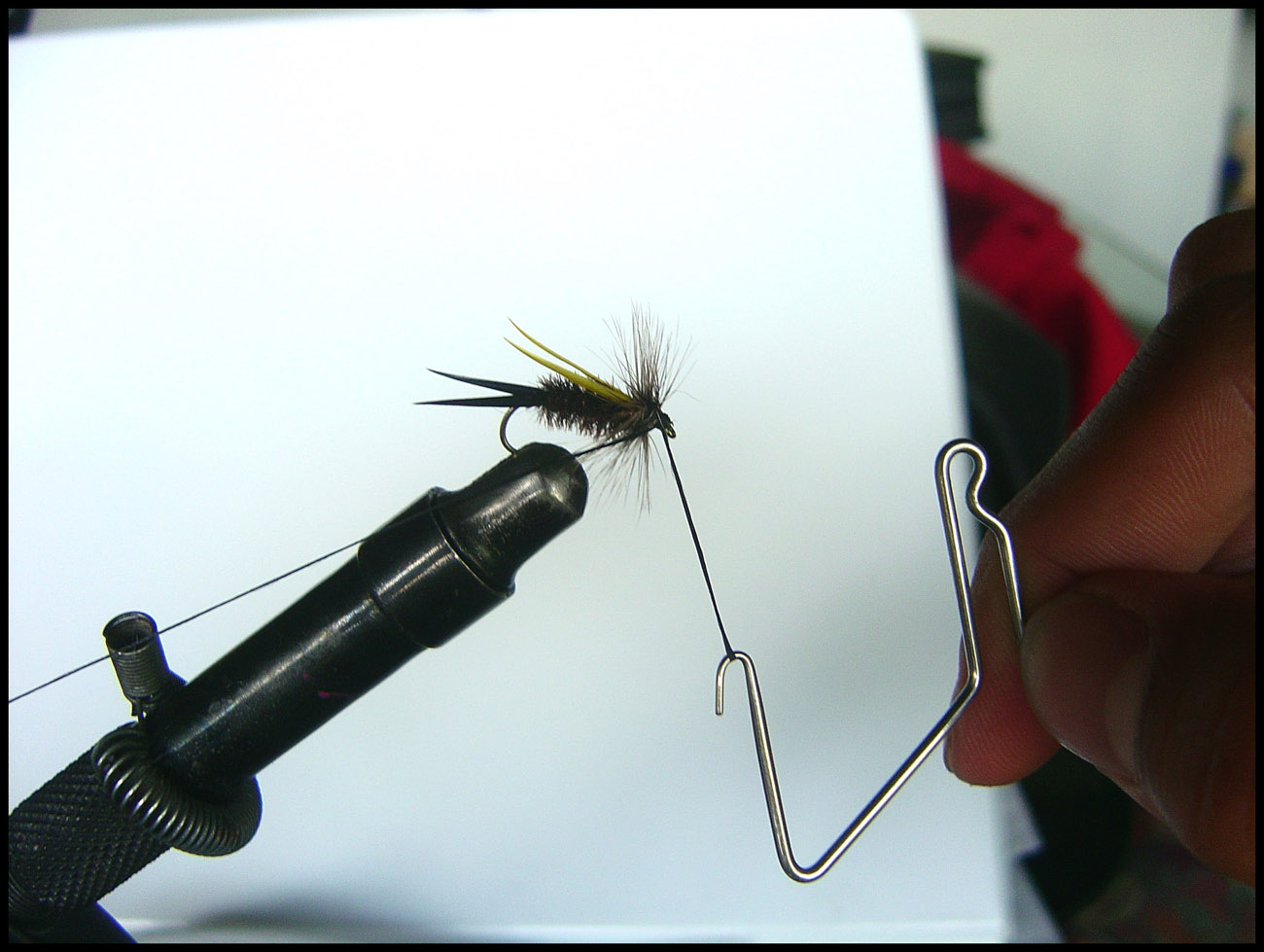 この作業ハックルプライヤーとスレッドで両手がふさがってたので写真は撮れませんでした ハックルを巻いた後はウィップフィニッシャーでスレッドをしっかりと結び留めます ヘッドセメントは付ける付けないは人好み、僕はマニキュアを一滴しみ込ませます PR |